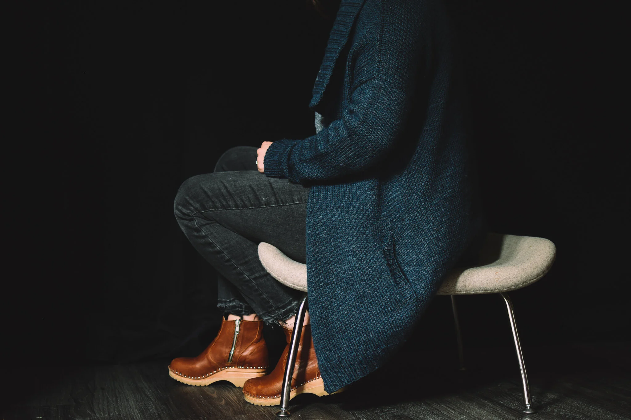 (200 m); 25% Manx Loaghtan Wool / 75% Punta Arenas Wool; Worsted weight yarn in Just Before Midnight.